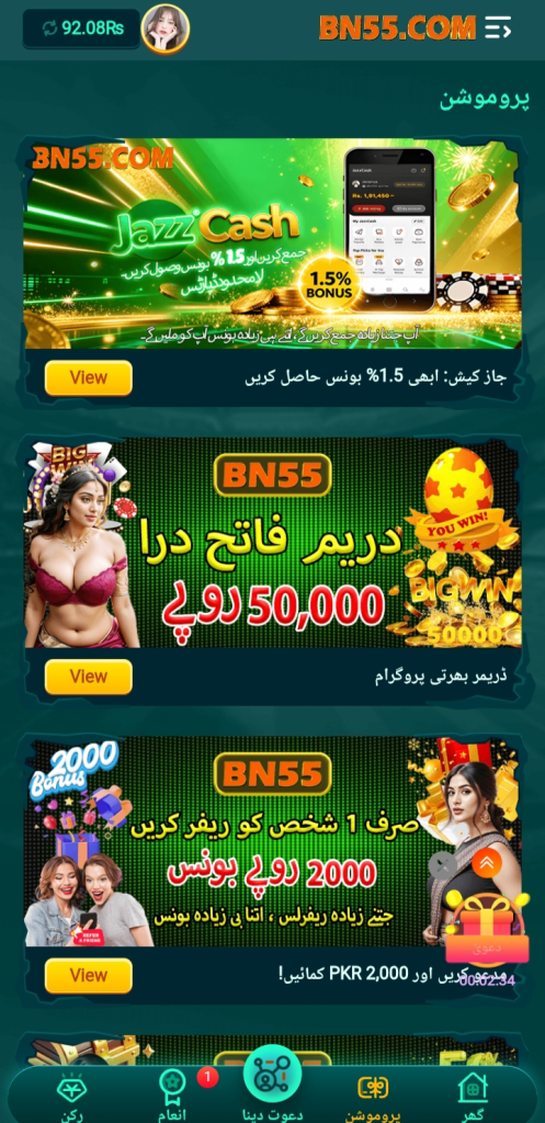 ہمارے تجربے کے مطابق، BN55 Game پاکستان میں ایک قابلِ اعتماد، آسان اور منافع بخش پلیٹ فارم ہے۔ اس کا انٹرفیس سادہ ہے، ودڈرال تیز ہیں، اور سسٹم شفاف محسوس ہوتا ہے۔